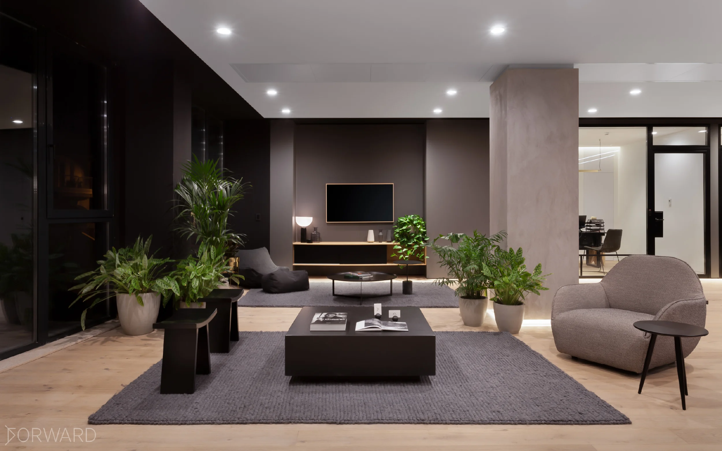 A beautiful casino, simple and user friendly and their workspace reflects their company philosophy; a beautiful, professional, clean simplistic space with neutral colours. The cabinets, kitchen cabinets, doors, tables, booth seat, panelling and timber doors are by SAW.