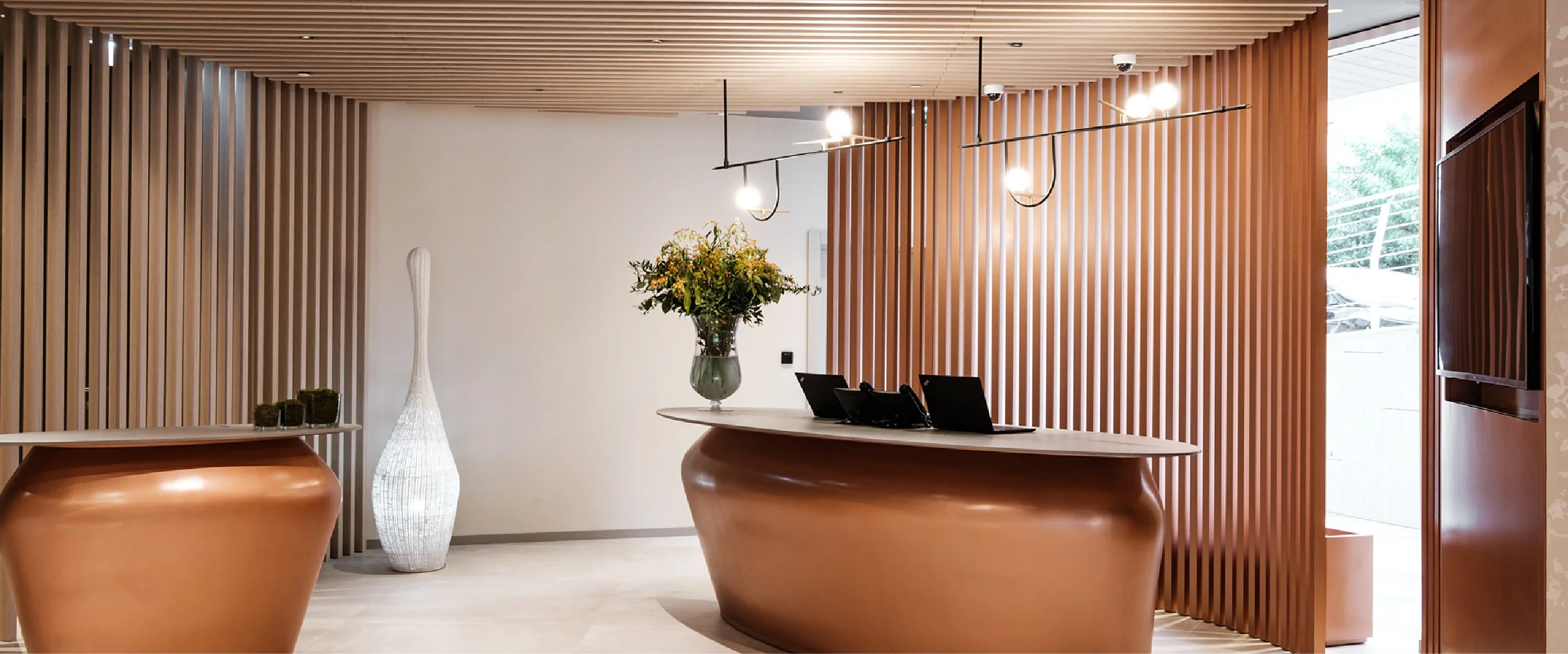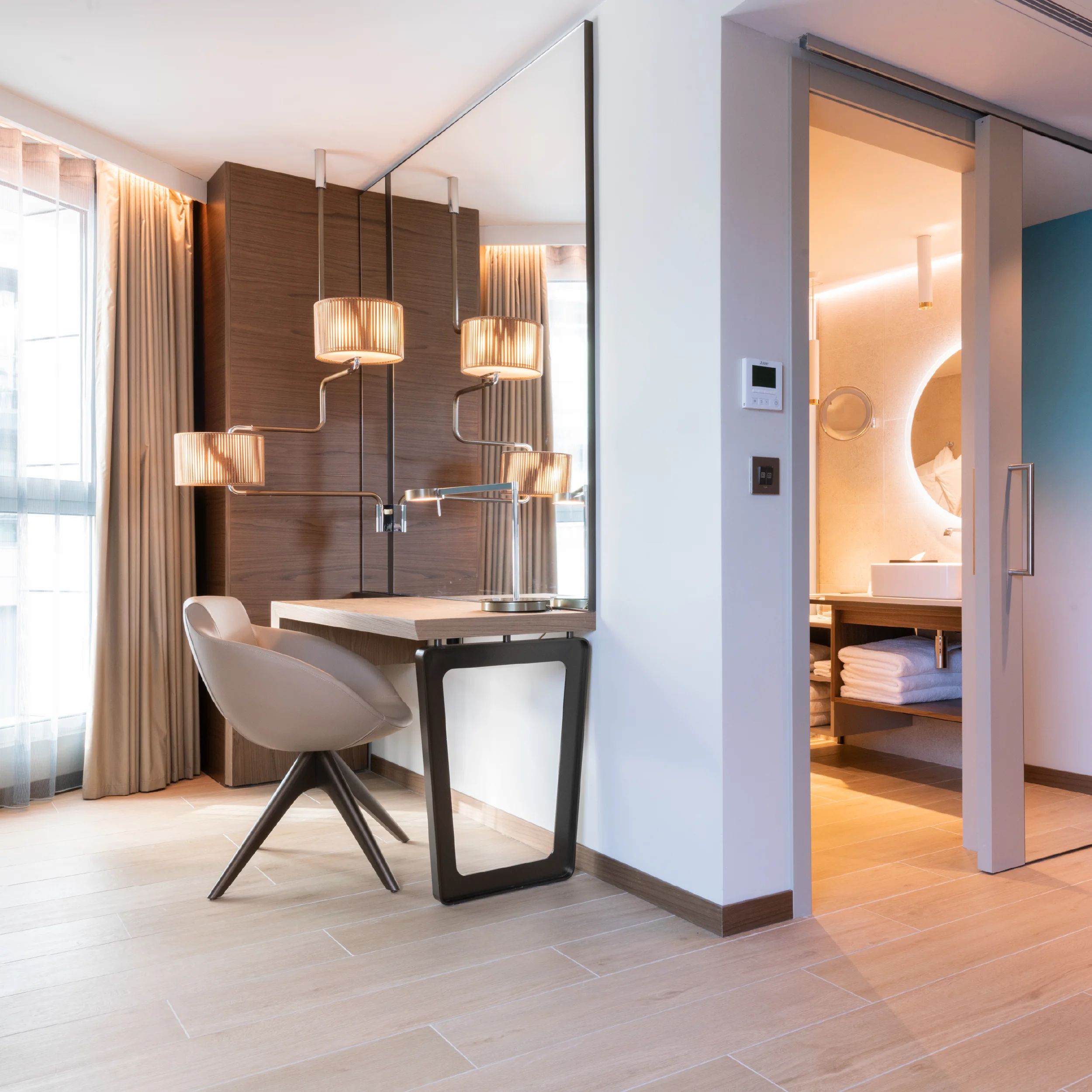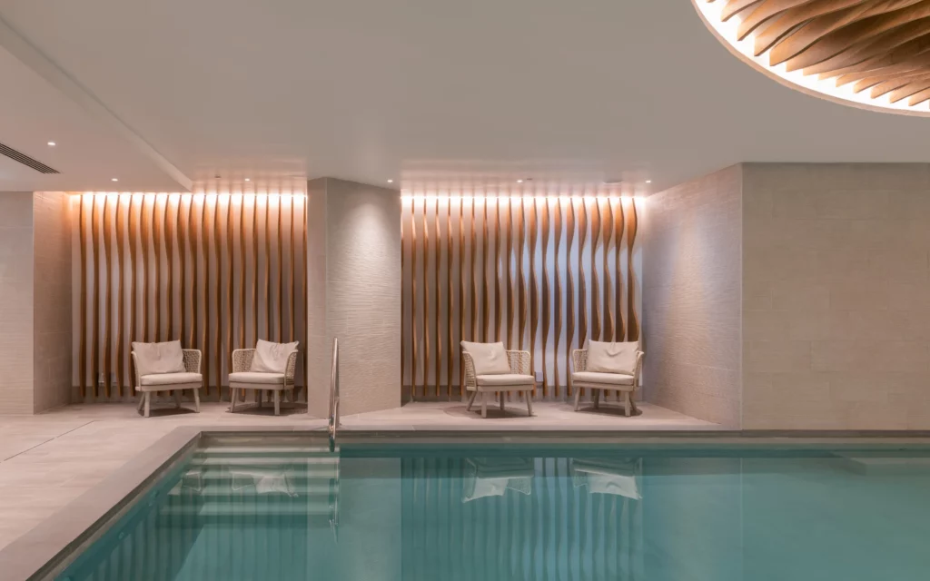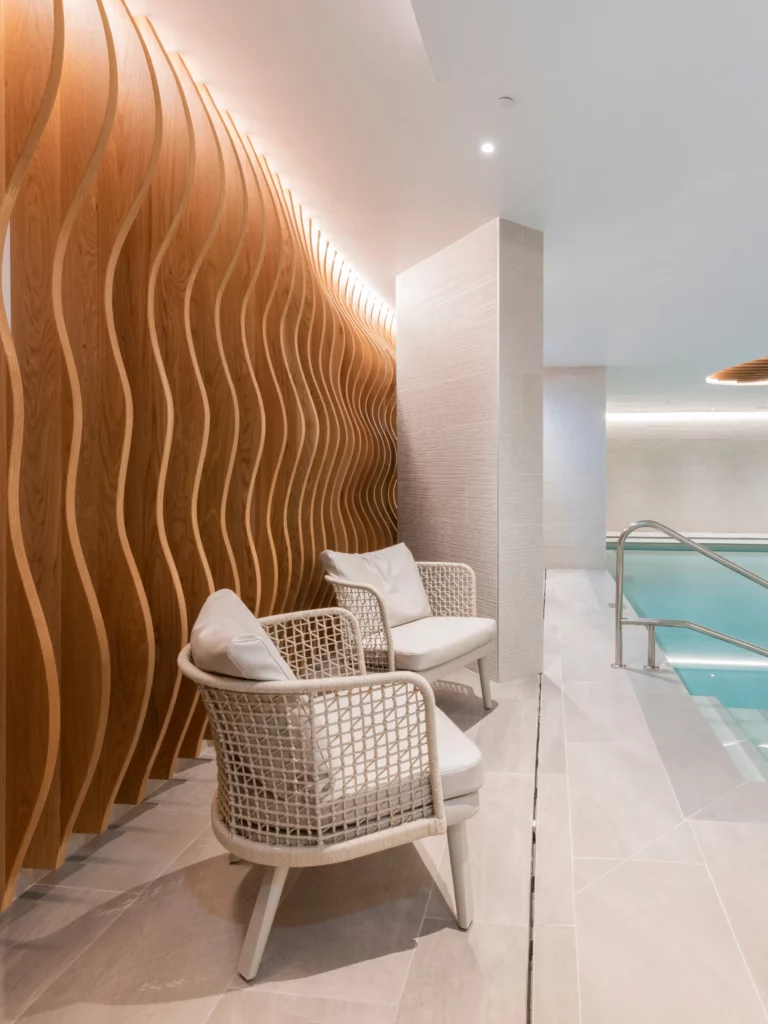 Beyond the rooms, SAW curated and installed loose furniture for the reception, pool bar, spa, meeting rooms, and restaurants, sourcing from renowned international brands including Moroso, Varaschin, and La Palma. The project’s centrepiece, a sculptural reception counter crafted from curved timber with a rich copper-effect finish embodies the hotel’s contemporary elegance and serves as a striking focal point upon entry. The result is a harmonious and luxurious interior, reflecting SAW’s ability to deliver large-scale hospitality projects with precision, artistry, and technical excellence.