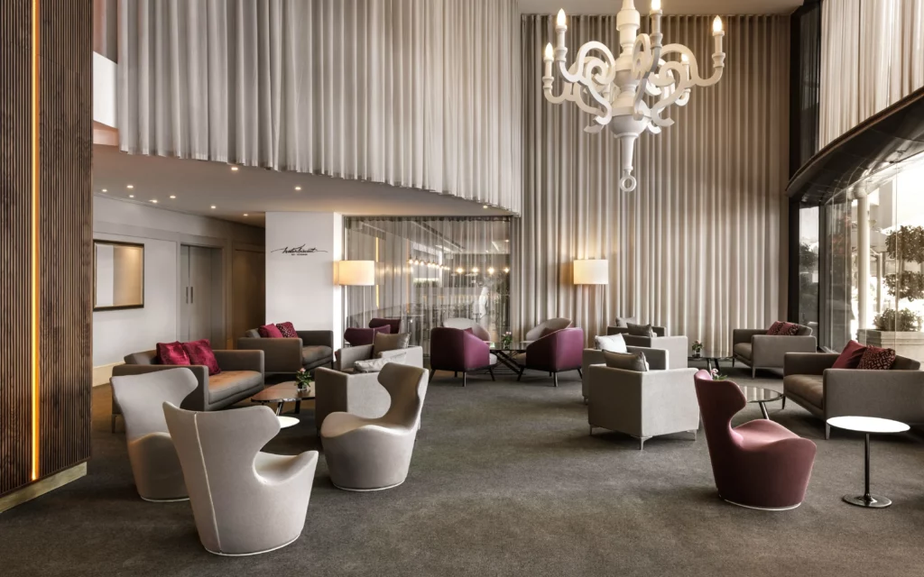 While the foyer was given a fresh, contemporary look, select elements from the original design were preserved and refinished to align with the upgraded aesthetic, helping to control costs without compromising style. SAW also delivered bespoke upgrades to the reception area and counters, utilising high-quality veneers and ribbed American walnut, ensuring every surface reflected the hotel’s premium standards.