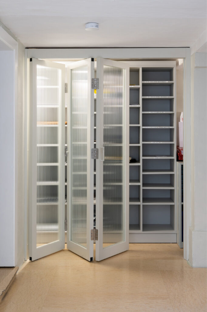 Our scope included custom joinery for the reception desk and ante porta aperture, creating a striking and functional office entrance. Additional features encompassed circular windows to complement the architectural character, sliding and folding doors, a shelving unit at the printer area, a storage cabinet, and a kitchenette, all designed to elevate comfort and operational efficiency within the office.