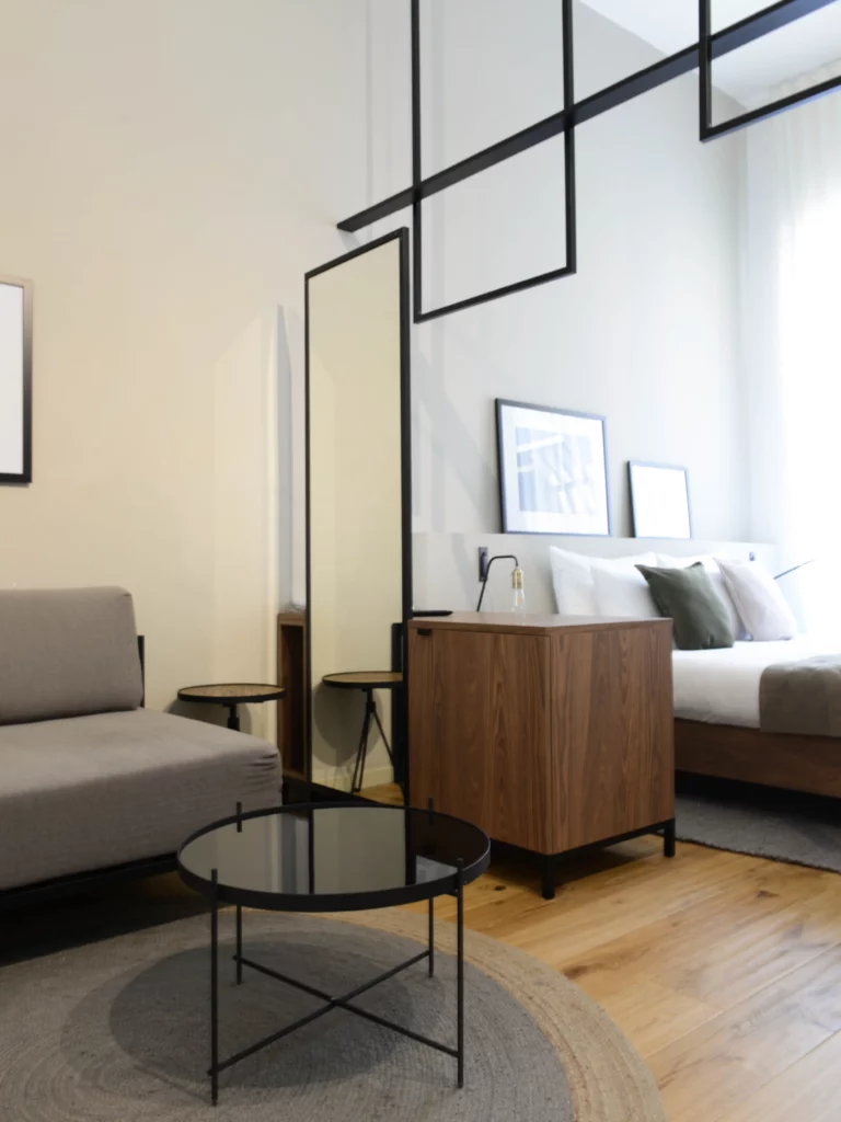SAW contributed to this project with the furnishing of the bedrooms, including metal frames, louvered doors, and external apertures, all carefully integrated to complement the architectural language of the restored palazzo. Photographed by Elsa Allen