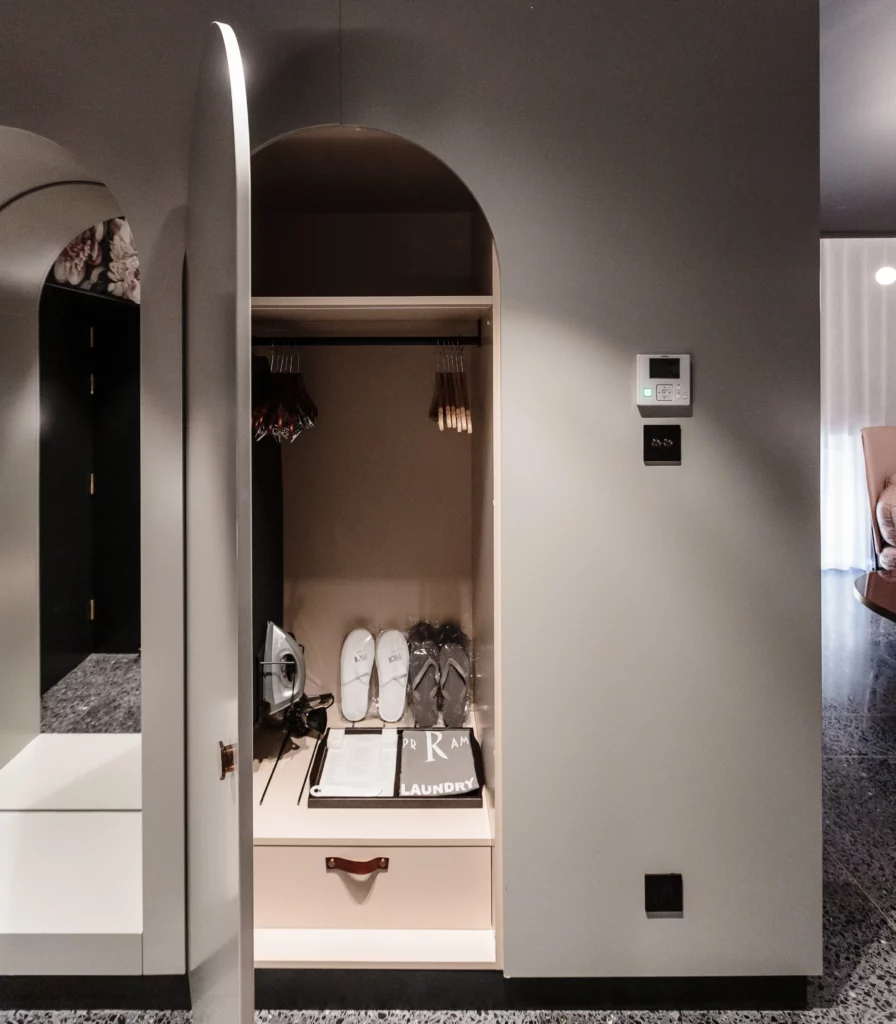SAW contributed to the project through a comprehensive joinery scope, including cladding with concealed arched doors, the reception desk, entrance unit, feature box frames, wall panelling, bespoke joinery items, and internal apertures. Each element was produced with precision to complement the hotel’s architectural heritage while supporting its modern, expressive interior vision. The result is a cohesive environment where bespoke craftsmanship enhances both the spatial experience and the character of this distinctive boutique hotel.